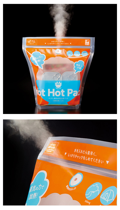 ・付属の発熱剤と水を入れるだけで水が沸騰して蒸気で加熱。